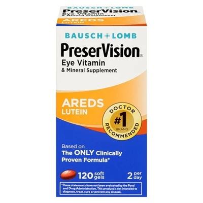 Bausch + Lomb PreserVision Areds Lutein 120 Softgels Protect your eyes against free radicals with the antioxidant power of lutein. Based on the AREDS formula, Bausch Lomb PreserVision Soft Gel Lutein features 5 mg of Lutein per softgel. Available in a convenient to take, 2perday soft gel format. Lutein is a carotenoid found in dark leafy green vegetables such as spinach. Lutein is highly concentrated in the macula, the part of the eye responsible for central vision.