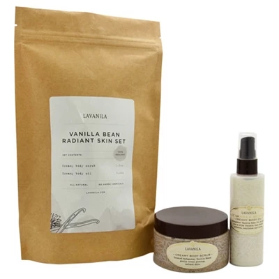 Lavanila Radiant Skin Set Vanilla Bean 2 Piece Set Includes Creamy Body Scrub 7.5oz + Creamy Body Oil 3.4oz